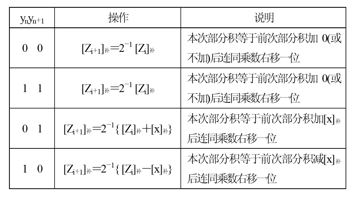 令部分积的初始值$[z0]补=0$,得部分积的递推形式: