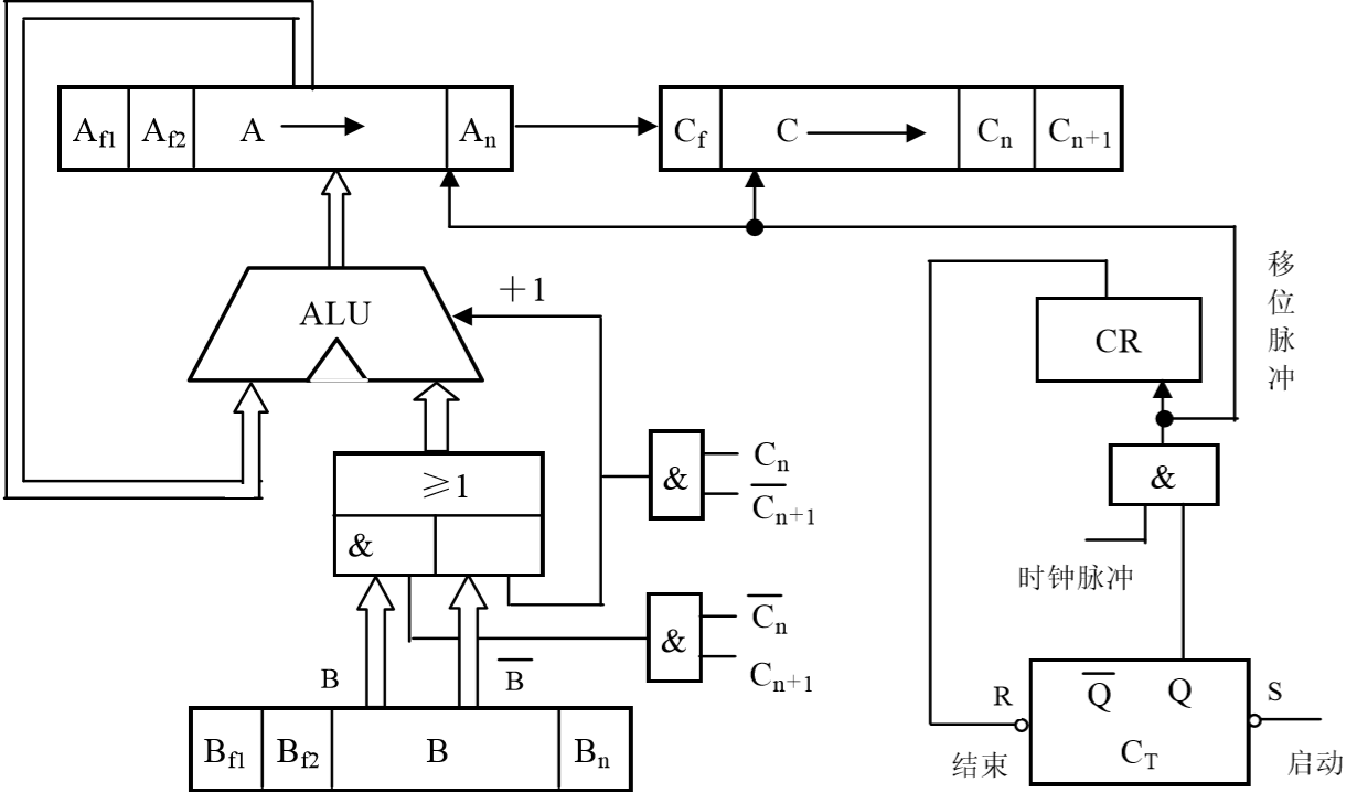 (2)乘数末位增设附加位$y{n+1}$,且初始$y{n+1}=0$。