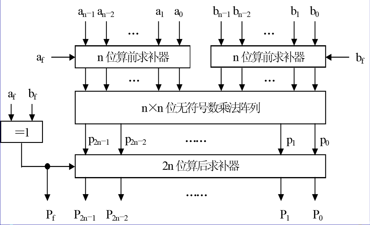 因为补码运算简单,因此不少机器采用补码乘法,常用的有布斯乘法。