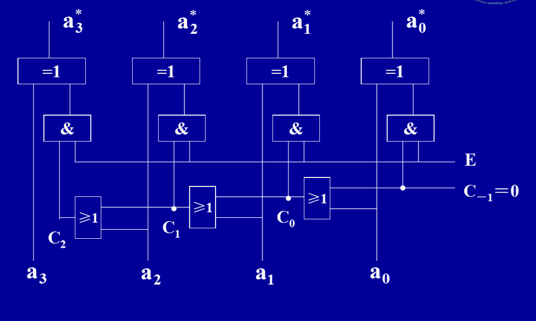 $E$为控制信号,0不求补,1求补,可以利用符号位来作为控制信号E。