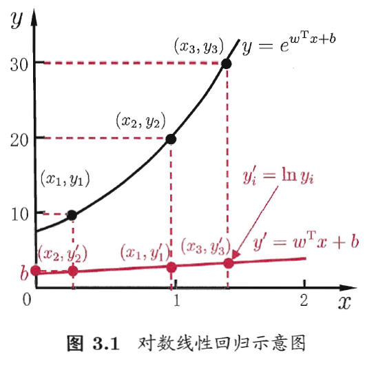 这就是”对数线性回归”(log-linear regression)。更一般地,考虑单调可微函数$g(\cdot)$,令