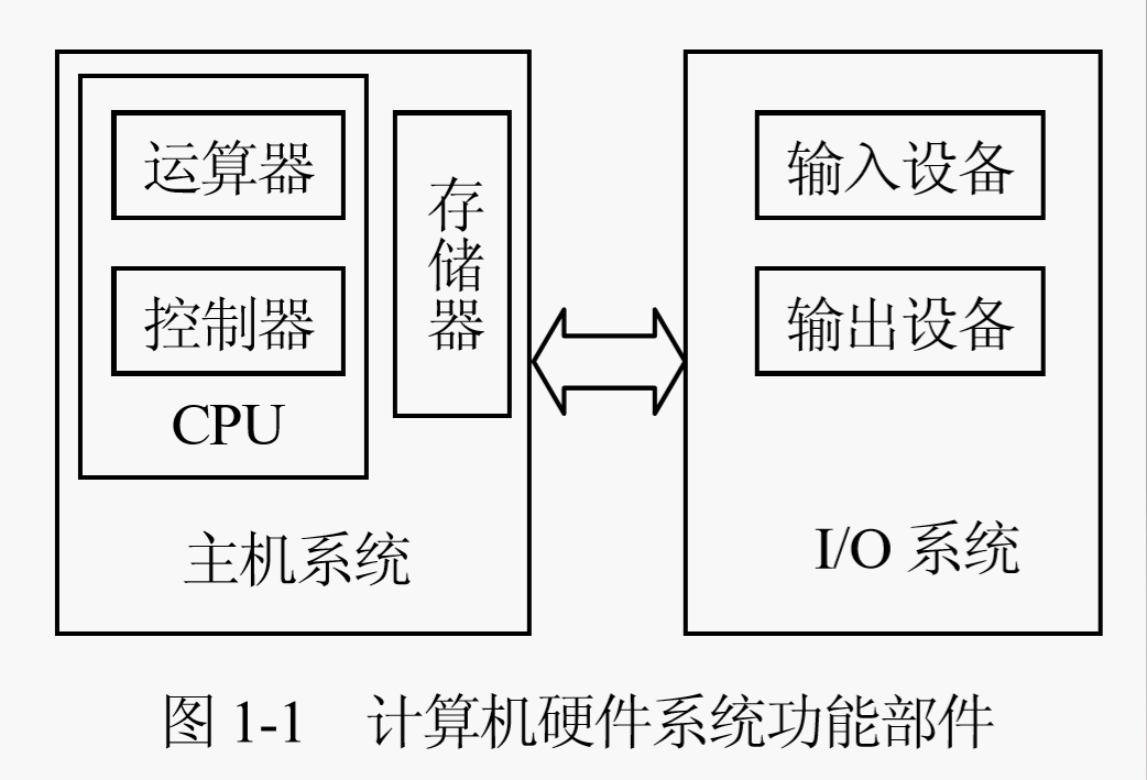 运算器和控制器统称为CPU,CPU与主存统称为计算机主机,输入设备、输出设备、外存储器统称I/O设备。