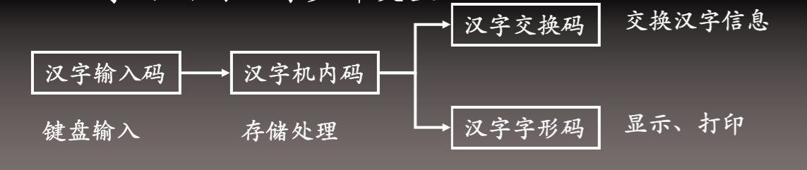 为使计算机能够处理各种汉字信息,必须对汉字进行编码。汉字在计算机中表示比较特殊,涉及输入、存储、处理输出等方面的问题,编码有很多类型。
