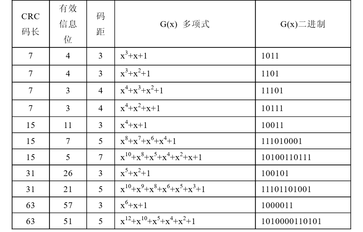 5.循环冗余校验码的生成多项式